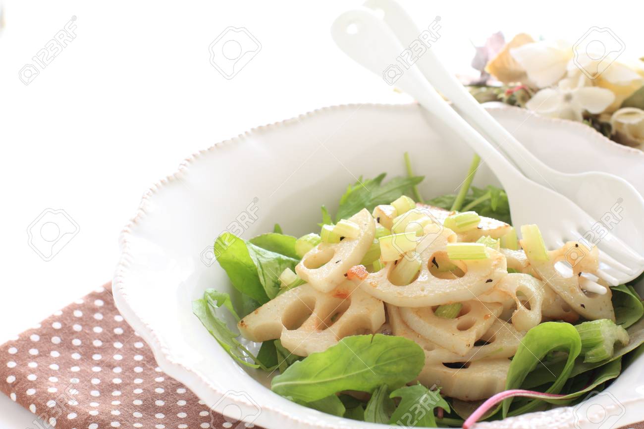 Sauteed Lotus Root On Baby Leaf Salad Stock Photo Picture And Royalty Free Image Image 119057490